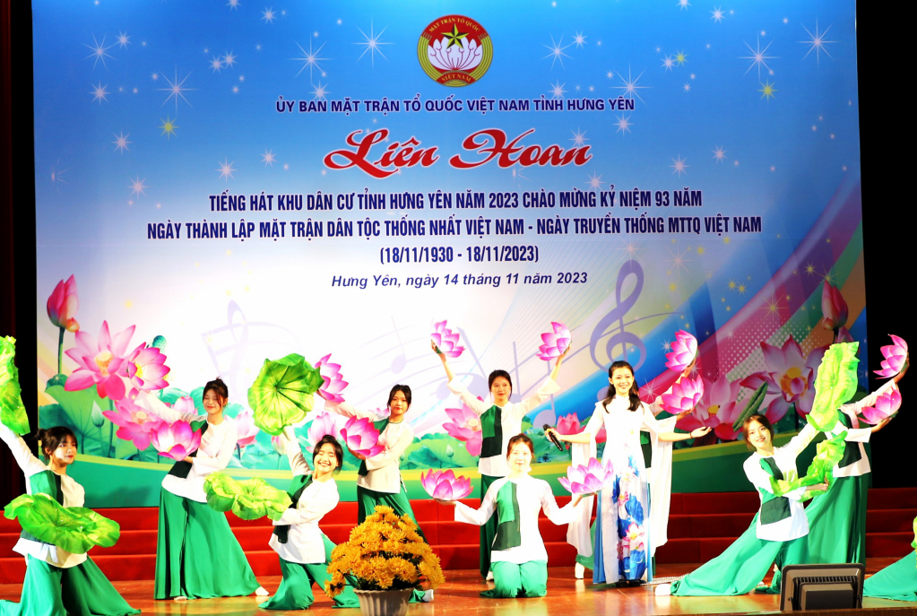 Chào mừng kỷ niệm 93 năm Ngày thành lập Mặt trận Dân tộc Thống nhất Việt Nam - Ngày truyền thống MTTQ Việt Nam (18/11/1930 - 18/11/2023), ngày 14/11, tại Nhà văn hóa Lao động tỉnh, Ủy ban MTTQ Việt Nam tỉnh tổ chức Liên hoan tiếng hát khu dân cư tỉnh Hưng Yên năm 2023. Dự liên hoan có đồng chí Quách Thị Hương, Ủy viên Ban Thường vụ Tỉnh ủy, Trưởng ban Dân vận Tỉnh ủy, Chủ tịch Ủy ban MTTQ Việt Nam tỉnh.