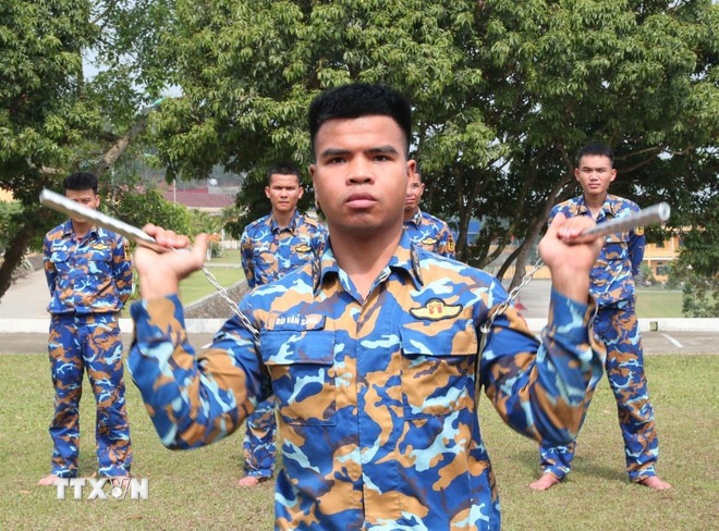 Huấn luyện võ chiến đấu đặc công của lực lượng Lữ đoàn đặc công 126 Hải quân. (Ảnh: Trọng Đức/TTXVN)