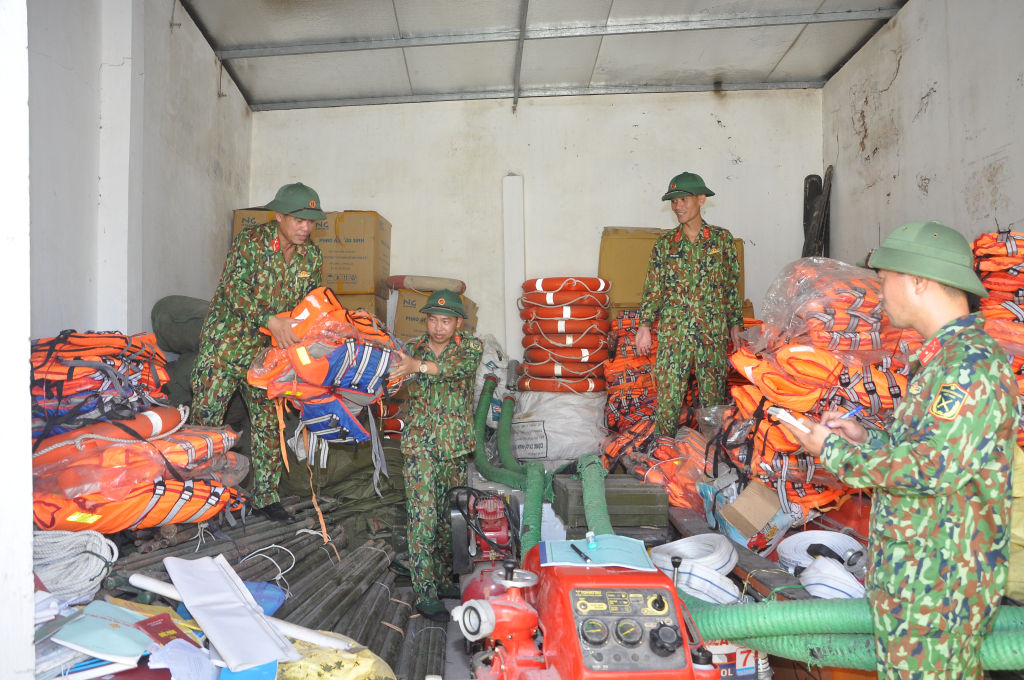 Trước khi bước vào mùa mưa bão, Ban Chỉ huy Quân sự (CHQS) huyện đã chỉ đạo các đơn vị LLVT chủ động chuẩn bị mọi điều kiện cần thiết cho công tác phòng, chống thiên tai (PCTT) và tìm kiếm cứu nạn (TKCN); tổ chức hiệp đồng với các đơn vị trên địa bàn một cách đồng bộ, chặt chẽ, nội dung cụ thể, sát với thực tế địa phương. Trung tá Vũ Tuấn Anh, Chỉ huy trưởng Ban CHQS huyện cho biết: Với quan điểm chỉ đạo “Phòng là chính, tích cực, chủ động, ứng cứu nhanh, có hiệu quả”, Ban CHQS huyện thường xuyên chỉ đạo các, đơn vị LLVT trên địa bàn tập trung rà soát, thực hiện chu đáo công tác PCTT và TKCN với phương châm “4 tại chỗ”, sẵn sàng các phương án huy động lực lượng, phương tiện, vật chất, ứng phó kịp thời khi có tình huống xảy ra. Đồng thời, duy trì nghiêm chế độ trực sẵn sàng chiến đấu, trực chỉ huy, trực ban; thường xuyên cập nhật thông tin, theo dõi sát diễn biến thời tiết, sự cố có thể xảy ra trên địa bàn, từ đó có biện pháp ứng phó phù hợp, kịp thời, hiệu quả.