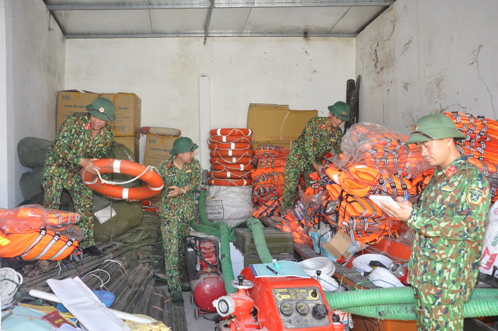 Ban CHQS huyện Phù Cừ chuẩn bị phương tiện phục vụ công tác phòng, chống bão úng và tìm kiếm cứu nạn