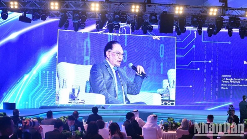 Thủ tướng Malaysia Anwar Ibrahim trao đổi tại Phiên thảo luận. (Ảnh THANH GIANG)