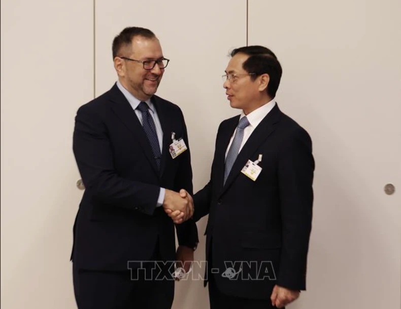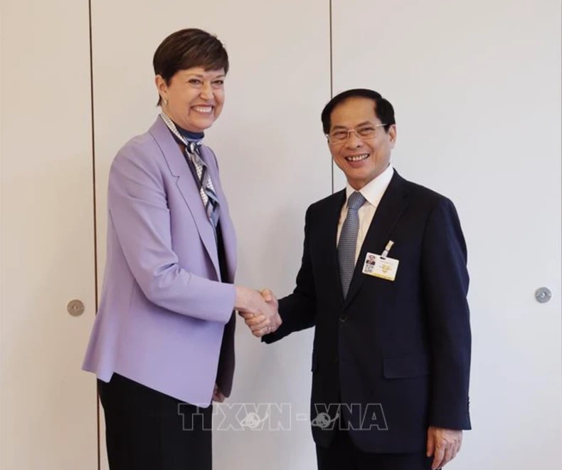 Bộ trưởng Ngoại giao Bùi Thanh Sơn và Cao ủy Nhân quyền của Liên hợp quốc Volker Turk. Ảnh: TTXVN