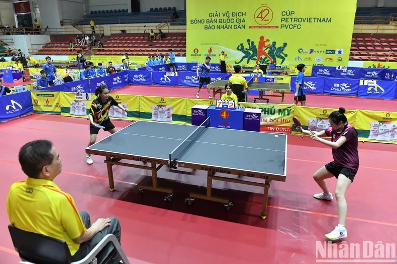 Đầu tư cho công tác đào tạo tài năng thể thao, tuy có tăng hằng năm, song còn thấp so với nhu cầu. Trong ảnh, các tay vợt thi đấu tại Giải vô địch bóng bàn quốc gia Báo Nhân Dân lần thứ 42 đang diễn ra tại Khánh Hòa. (Ảnh: ĐĂNG KHOA)