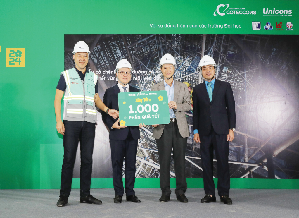 Đại diện Ban tổ chức chương trình “Xây Tết 2024” trao tượng trưng 1.000 phần quà Tết cho công nhân, người lao động tỉnh Hưng Yên