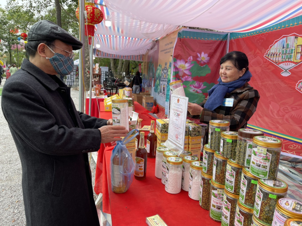 Khách hàng chọn mua sản phẩm bột sắn dây Hưng Yên của HTX cây ăn quả và chế biến nông sản Tân Hưng (thành phố Hưng Yên)