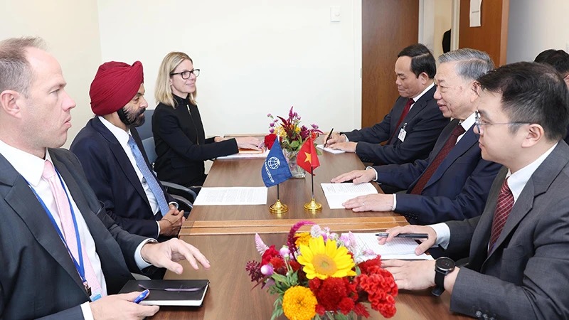 Tổng Bí thư, Chủ tịch nước Tô Lâm gặp Chủ tịch Ngân hàng Thế giới (World Bank) Ajay Banga. (Ảnh TTXVN)