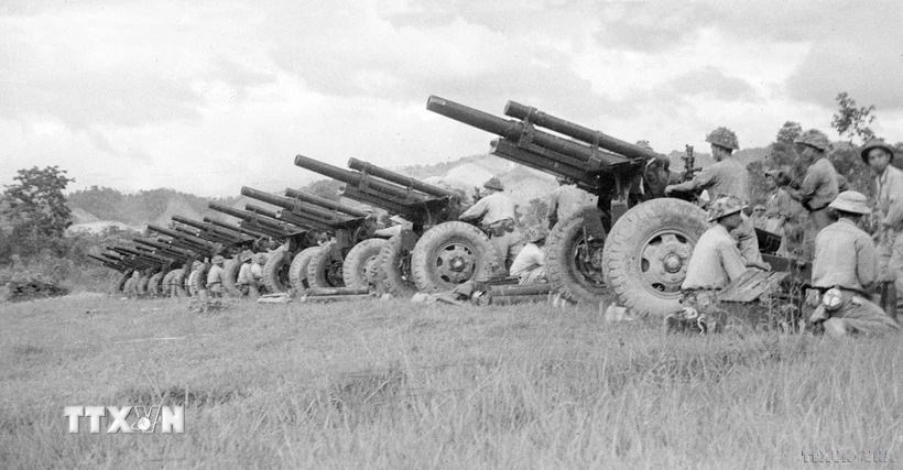 Bộ đội pháo binh dội bão lửa xuống căn cứ của địch tại Him Lam, ngày 13/3/1954. (Ảnh: TTXVN)