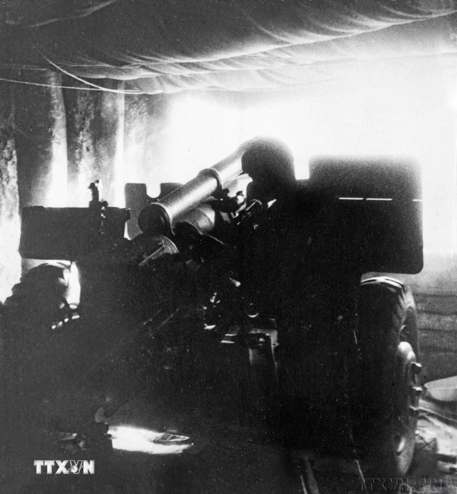 Pháo cao xạ phát huy sức mạnh tại Điện Biên Phủ, khiến quân Pháp hoang mang, lúng túng. (Ảnh: Tư liệu TTXVN)