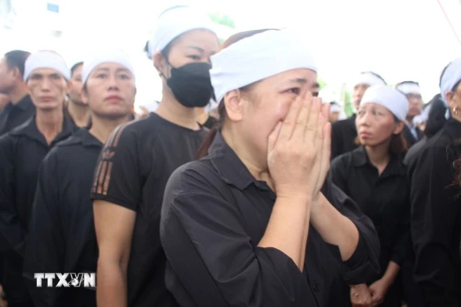 Giây phút xúc động nghẹn ngào của người dân Đông Anh tại lễ viếng. (Ảnh: TTXVN)