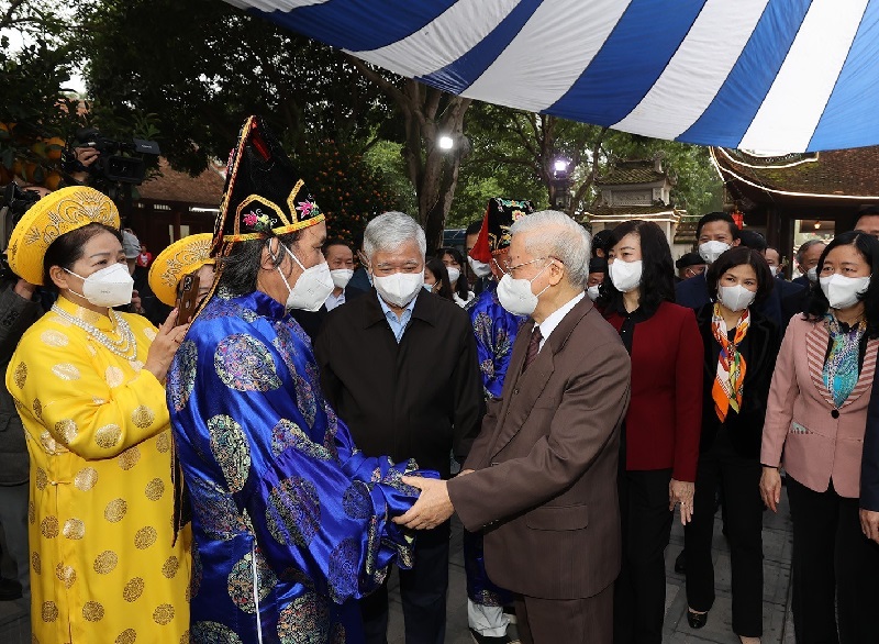 Tổng Bí thư Nguyễn Phú Trọng với nhân dân tại Di tích lịch sử - văn hóa Đền Đô (phường Đình Bảng, thành phố Từ Sơn, tỉnh Bắc Ninh) _Ảnh: TTXVN