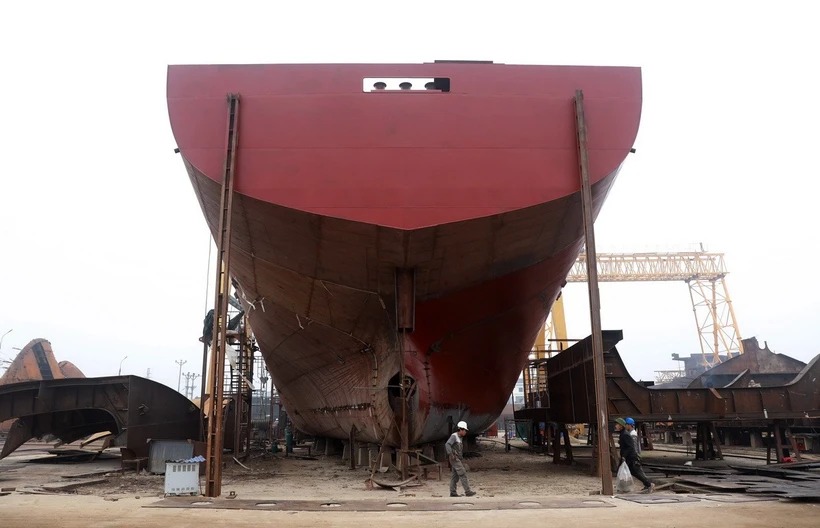Đóng mới tàu biển tại Nhà máy đóng tàu Phú An, huyện Trực Ninh, tỉnh Nam ĐỊnh. (Ảnh: Quốc Khánh/TTXVN)