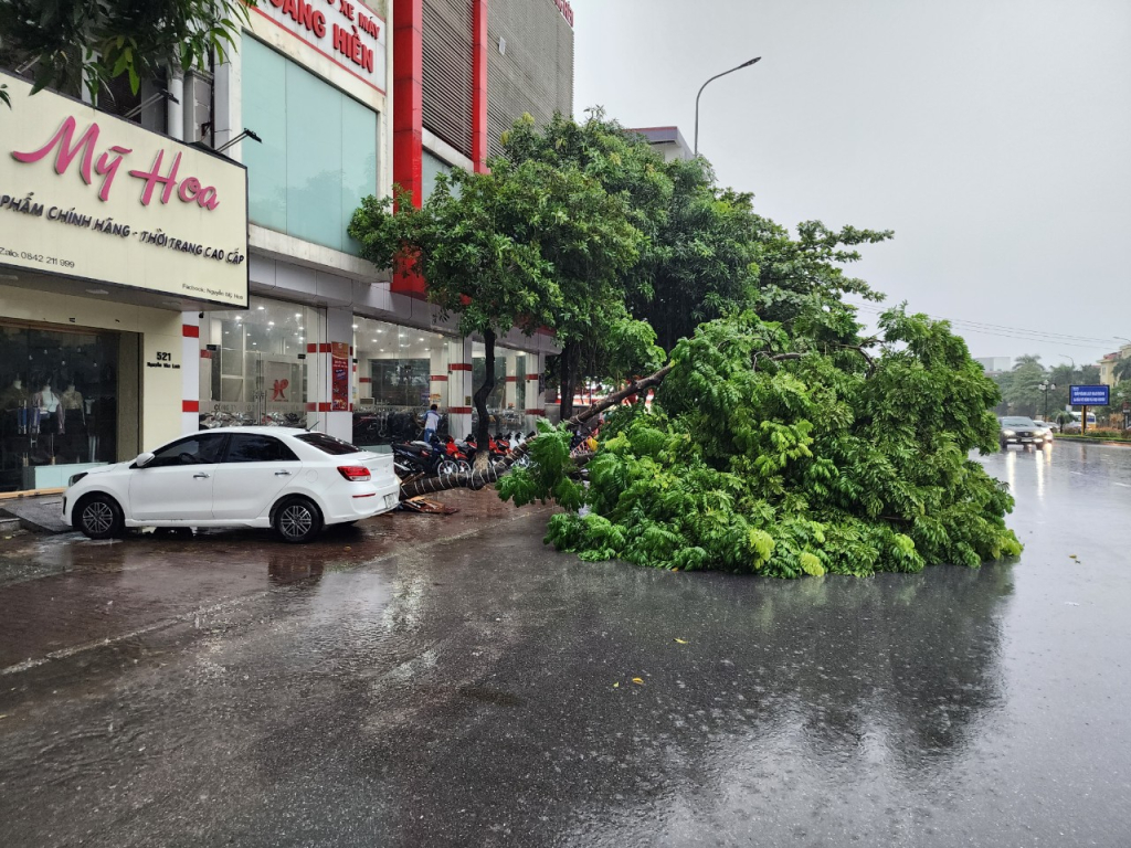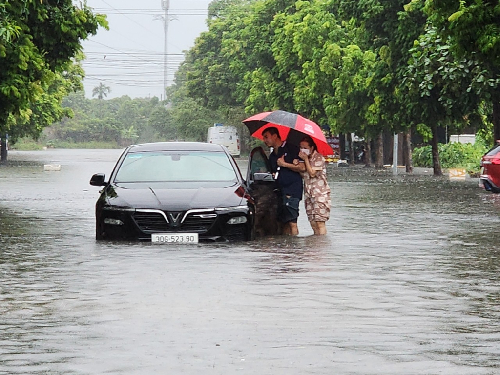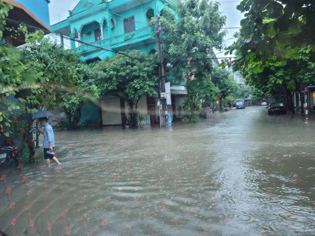 Trận mưa sáng 28/9 với lưu lượng nước lớn, lượng mưa đo được trên 100mm, đã gây ngập úng nhiều tuyến đường trên địa bàn thành phố Hưng Yên như: Trưng Trắc, Trưng Nhị, Hồ Xuân Hương, Tuệ Tĩnh, Lương Định Của, Nguyễn Văn Linh... Nhiều tuyến đường ngập sâu khiến phương tiện chết máy, ảnh hưởng đến giao thông và sinh hoạt của người dân.