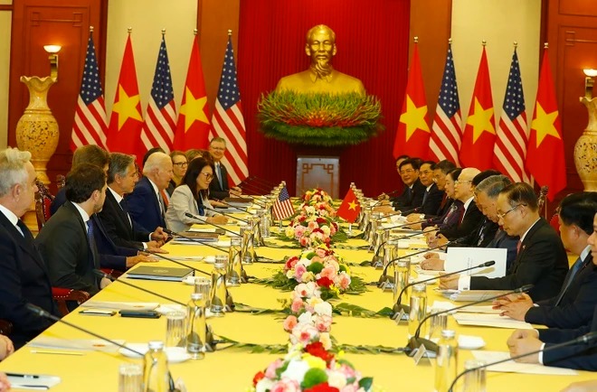 Trước hết, chuyến thăm Việt Nam của Tổng thống Hoa Kỳ Joe Biden theo lời mời của Tổng Bí thư Nguyễn Phú Trọng (10-11/9/2023), hai bên thiết lập quan hệ Đối tác Chiến lược Toàn diện vì hòa bình, hợp tác và phát triển bền vững. Theo đó, lần đầu tiên trong lịch sử kể từ khi thành lập nước Việt Nam Dân chủ Cộng hòa và cũng là khi thành lập Liên hợp quốc vào năm 1945, Việt Nam là đối tác chiến lược hoặc đối tác chiến lược toàn diện với tất cả các nước Ủy viên Thường trực Hội đồng Bảo an Liên hợp quốc.