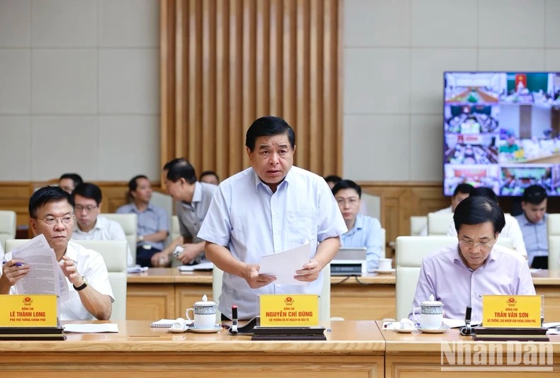 Bộ trưởng Kế hoạch và Đầu tư Nguyễn Chí Dũng báo cáo tại hội nghị. (Ảnh: Trần Hải)