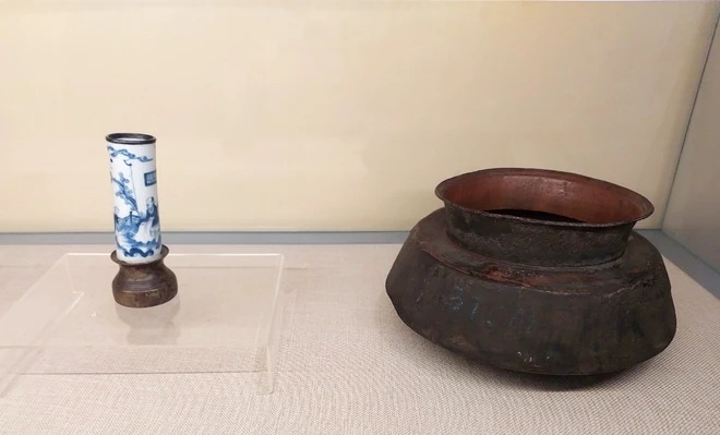Ống cắm bút và nồi dùng để nấu mực. Các đồng chí Trường Chinh, Hoàng Văn Thụ, Hoàng Quốc Việt tùng sử dụng khi hoạt động cách mạng ở