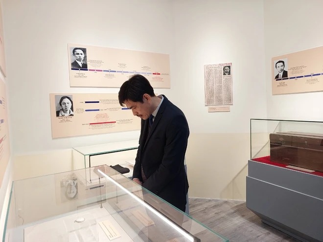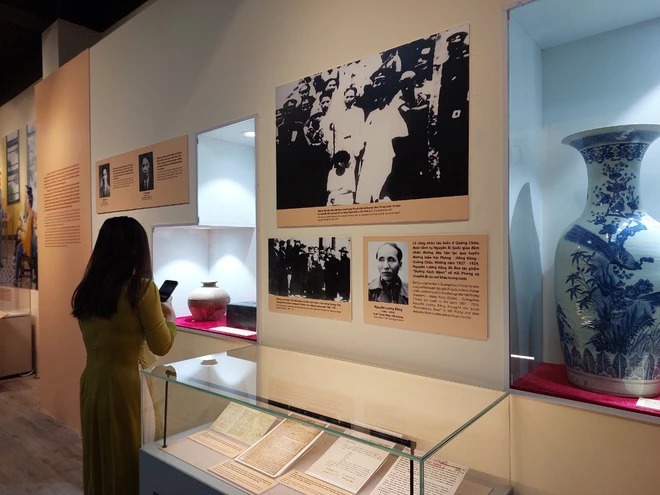 Trưng bày giới thiệu nhiều hiện vật về thế hệ các chiến sỹ cách mạng Việt Nam đầu tiên. (Ảnh: Minh Thu/Vietnam+)