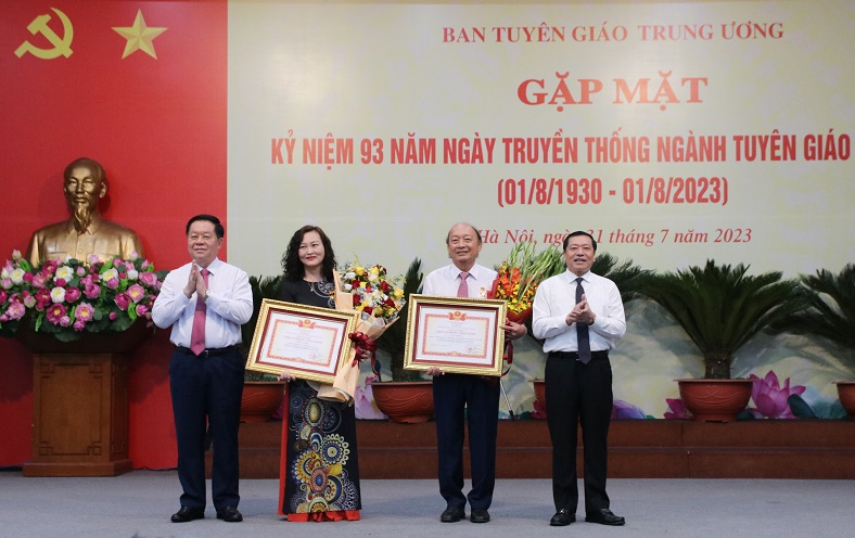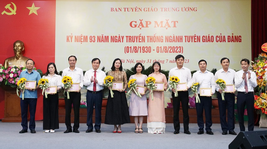 Trong khuôn khổ chương trình, Ban tổ chức đã công bố phong tặng Danh hiệu "Chiến sỹ thi đua toàn quốc" của Thủ tướng Chính phủ tặng đồng chí Võ Văn Phuông, nguyên Ủy viên Trung ương Đảng, nguyên Phó Trưởng Ban thường trực Ban Tuyên giáo Trung ương và đồng chí Đỗ Thị Thanh Hà, Phó Chủ tịch chuyên trách Hội đồng khoa học các cơ quan Đảng Trung ương; công bố và trao Bằng khen của Thủ tướng Chính phủ tặng Vụ Thông tin đối ngoại và hợp tác quốc tế vì đã có thành tích xuất sắc trong công tác, góp phần vào thành công của nhiệm kỳ Việt Nam đảm nhiệm vai trò Ủy viên không thường trực Hội đồng bảo an Liên hợp quốc 2020-202; trao tặng Kỷ niệm chương “Vì sự nghiệp tuyên giáo” cho cán bộ, công chức, viên chức, người lao động Ban Tuyên giáo Trung ương vì đã có thành tích đóng góp vào quá trình xây dựng, phát triển sự nghiệp tuyên giáo của Đảng./.