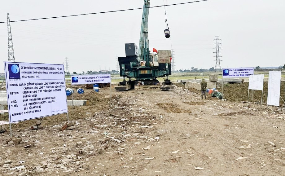 Thi công xây dựng vị trí móng cột Dự án đường dây 500kV Nhà máy điện Nam Định I – Phố Nối tại huyện Văn Lâm