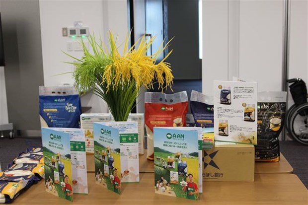 Gạo ST25 được giới thiệu tại Nhật Bản với thương hiệu A An. (Ảnh: Đào Thanh Tùng/TTXVN)