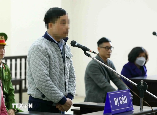 Bị cáo Phạm Trung Kiên, cựu cán bộ Bộ Y tế khai báo trước toà. (Ảnh: Phạm Kiên/TTXVN)