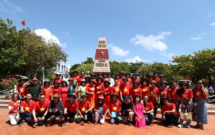 Đoàn công tác của Ủy ban Nhà nước về người Việt Nam ở nước ngoài và đại biểu kiều bào tại thị trấn Trường Sa năm 2024. (Ảnh PHAN HẢI)