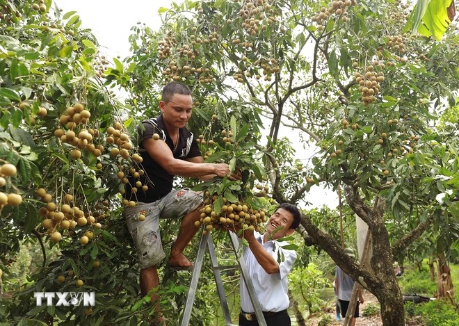 Hợp tác xã Nhãn lồng Bảo Tiến ở xã Tiền Phong, huyện Ân Thi có 20 hộ thành viên sản xuất trên diện tích 15ha nhãn đạt tiêu chuẩn VietGap, mỗi năm thu hoạch hơn 200 tấn sản phẩm (trong đó 70% quả tươi được tiêu dùng trong nước). (Ảnh: Vũ Sinh/TTXVN)