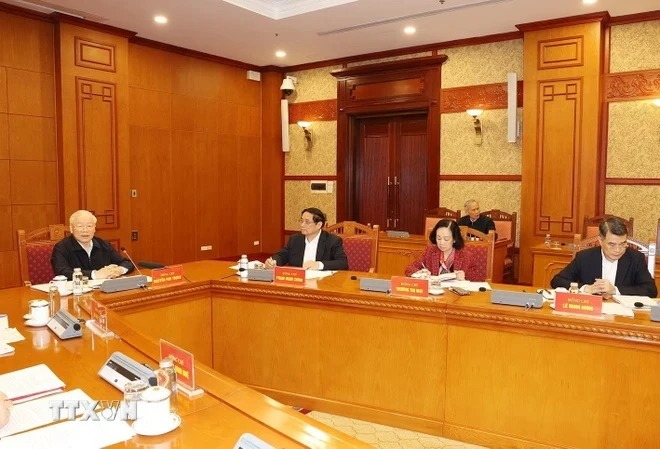 Tổng Bí thư Nguyễn Phú Trọng chủ trì phiên họp đầu tiên Tiểu ban Nhân sự Đại hội XIV của Đảng ngày 13/3/2024. (Ảnh: Trí Dũng/TTXVN)