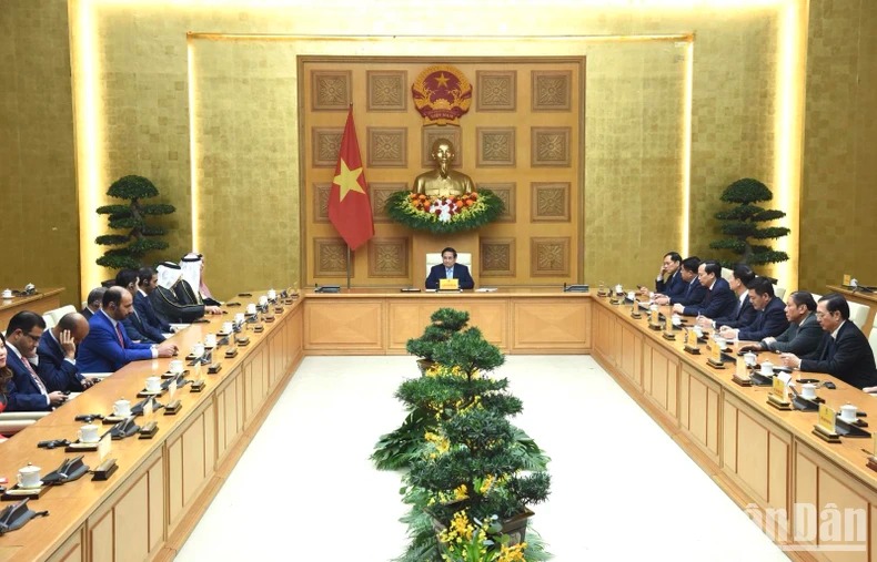 Chiều tối 24/12, tại Trụ sở Chính phủ, Thủ tướng Chính phủ Phạm Minh Chính làm việc với Đại sứ và cán bộ, nhân viên Đại sứ quán các nước Saudi Arabia, Các Tiểu Vương quốc Arab Thống nhất (UAE), Qatar tại Việt Nam nhằm thúc đẩy hiện thực hóa thỏa thuận cấp cao Việt Nam với 3 nước.