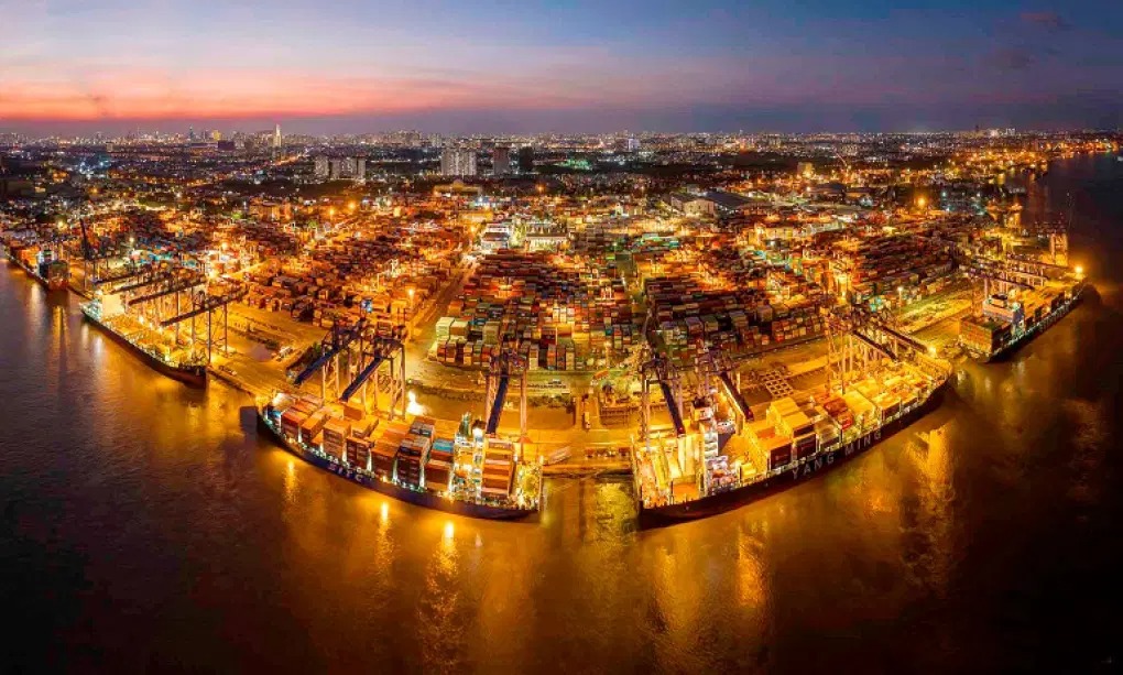 Bốc, xếp hàng hóa xuất khẩu tại Tân Cảng Sài Gòn, Thành phố Hồ Chí Minh. (Nguồn: nhiepanhdoisong.vn)