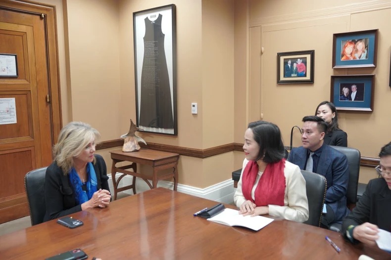 Thượng nghị sĩ Marsha Blackburn và Thượng nghị sĩ Peter Welch chia sẻ những đánh giá của Phó Chủ tịch Quốc hội về những thành tựu của quan hệ song phương trong 30 năm qua, khẳng định Hoa Kỳ đặc biệt coi trọng quan hệ với Việt Nam và việc hai nước nâng cấp quan hệ lên Đối tác chiến lược toàn diện năm 2023 cho thấy Việt Nam đã trở thành đối tác hàng đầu của Hoa Kỳ tại khu vực.
