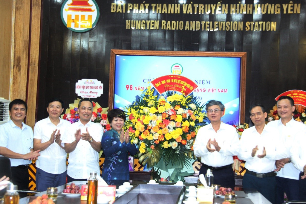 tặng hoa chúc mừng Đài Phát thanh và Truyền hình Hưng Yên