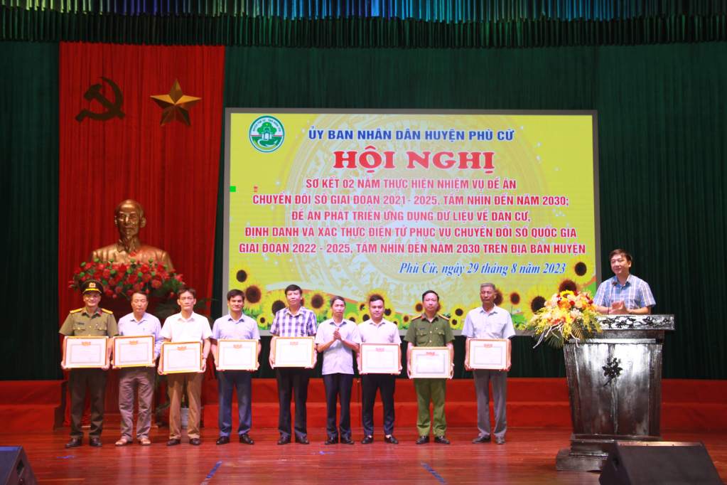 Nhân dịp này, nhiều tập thể, cá nhân được Chủ tịch UBND huyện tặng giấy khen vì có thành tích xuất sắc trong thực hiện Đề án CĐS và Đề án 06.