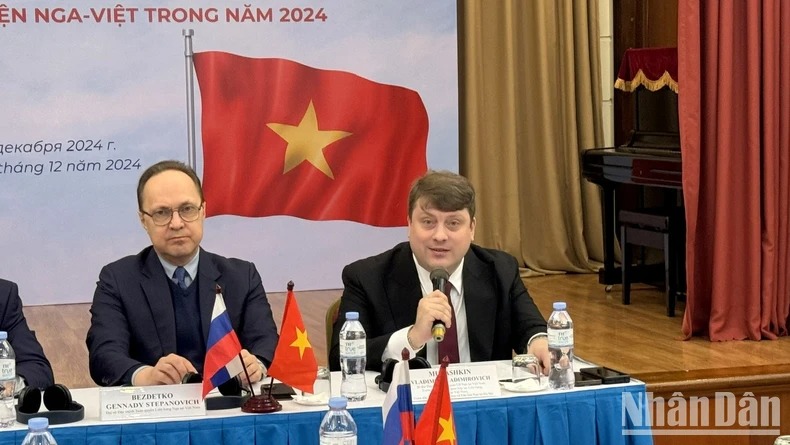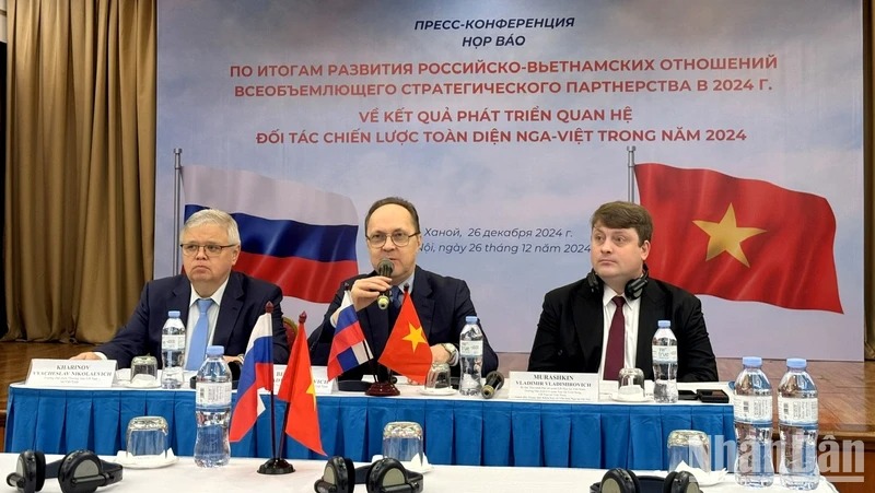 Tại họp báo, thông tin về hợp tác kinh tế thương mại Việt Nam-Liên bang Nga, Trưởng đại diện thương mại Nga tại Việt Nam, ông Viacheslav Kharinov nêu rõ, mối quan hệ song phương vững chắc và sự tin cậy về chính trị ở cấp cao nhất đang góp phần phát triển mạnh mẽ hợp tác kinh doanh cùng có lợi giữa hai nước.