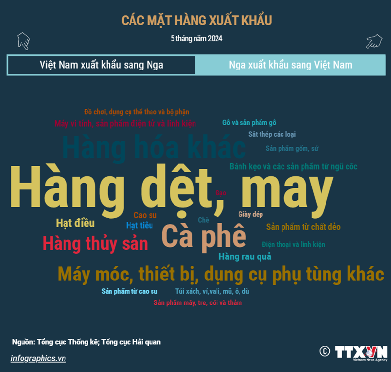 Hơn nữa, kể từ khi Hiệp định Thương mại Tự do giữa Việt Nam và Liên minh kinh tế Á-Âu (EAEU) có hiệu lực, tăng trưởng kim ngạch thương mại giữa Việt Nam-Nga đã có bước tiến mạnh mẽ và là điều kiện thuận lợi để doanh nghiệp hai bên tăng cường hợp tác kinh tế, thương mại và đầu tư.