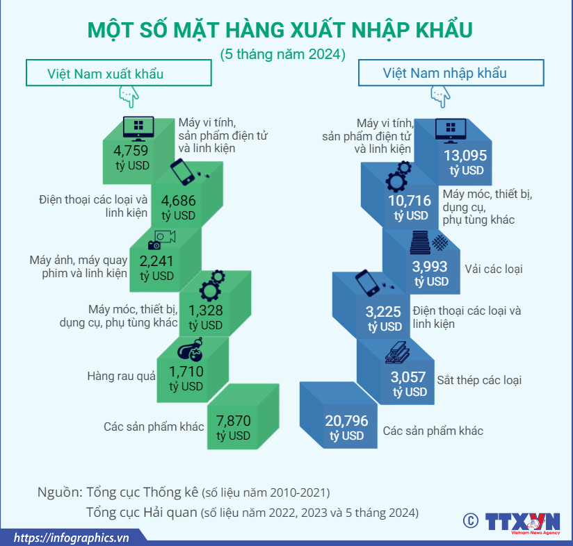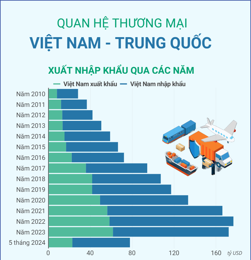 Năm 2023, thương mại song phương giữa hai nước đạt 171,9 tỷ USD; trong 5 tháng năm 2024, tổng kim ngạch xuất nhập khẩu giữa hai nước đạt hơn 77 tỷ USD./.