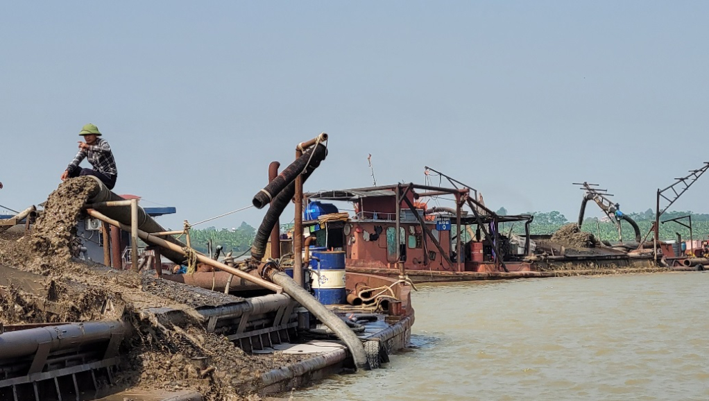 Khai thác cát lòng sông Hồng tại xã Quảng Châu (thành phố Hưng Yên)
