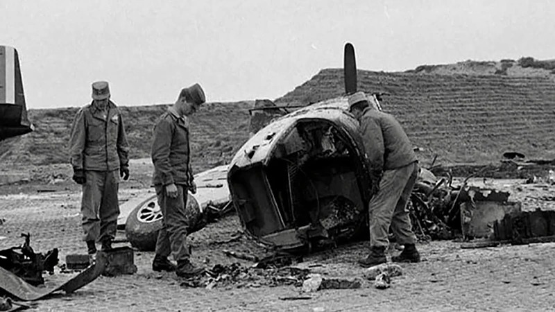 Máy bay Pháp bị phá hủy trong trận tập kích sân bay Cát Bi, Hải Phòng. (Ảnh tư liệu)