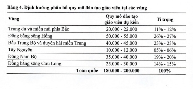 Cụ thể, theo quy hoạch, đến năm 2030, phát triển mạng lưới cơ sở giáo dục đại học đào tạo giáo viên đạt quy mô từ 180.000 đến 200.000 người học, trong đó khoảng 85% ở trình độ đại học và 15% ở trình độ cao đẳng. Phân bố quy mô tại các vùng như sau:
