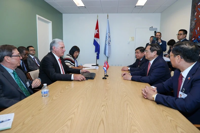 Nhân dịp tham dự Phiên thảo luận chung cấp cao Đại hội đồng Liên hợp quốc tại New York, Hoa Kỳ, chiều 20/9 (giờ địa phương), Thủ tướng Chính phủ Phạm Minh Chính đã gặp Bí thư thứ nhất, Chủ tịch Cuba Miguel Díaz-Canel.