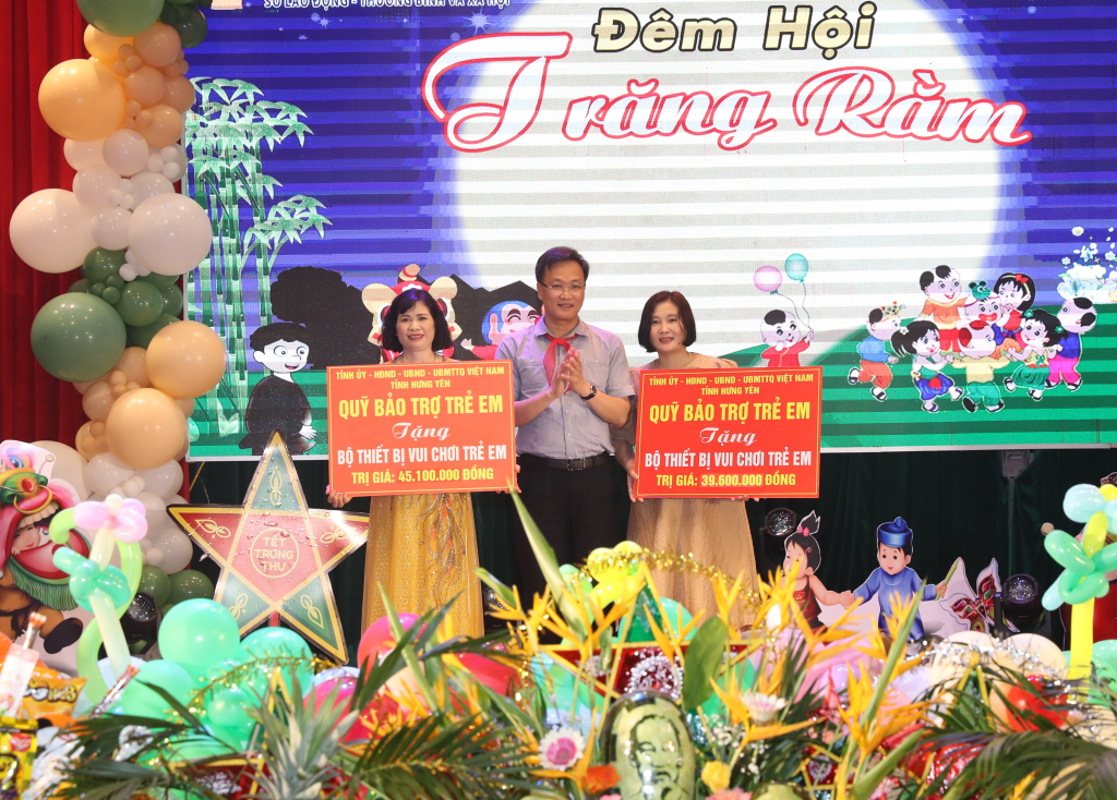 Nhân dịp này, các đồng chí lãnh đạo tỉnh trao bộ thiết bị vui chơi cho trẻ em và quà tặng Trường Mầm non Bần Yên Nhân (thị xã Mỹ Hào), Trường Mầm non Vĩnh Xá (Kim Động); trao học bổng và quà từ Quỹ Bảo trợ trẻ em tỉnh tặng 20 trẻ em có hoàn cảnh khó khăn vươn lên trong học tập. Lãnh đạo thị xã Mỹ Hào tặng học bổng và quà từ Quỹ Bảo trợ trẻ em thị xã cho 20 trẻ em có hoàn cảnh khó khăn vươn lên trong học tập.
