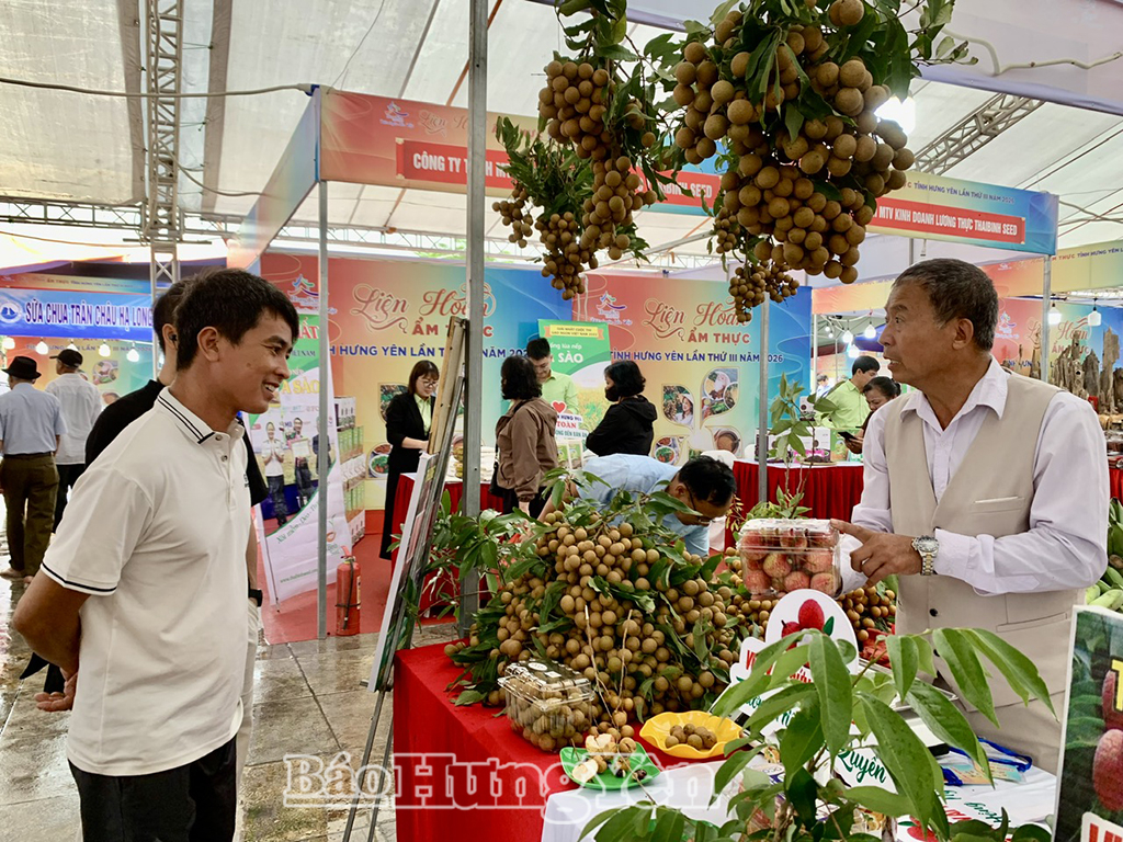 Sản phẩm OCOP long nhãn ôm sen của HTX cây ăn quả và chế biến nông sản Tân Hưng được nhiều khách hàng ưa chuộng tại Liên hoan ẩm thực tỉnh Hưng Yên lần thứ III, năm 2026.