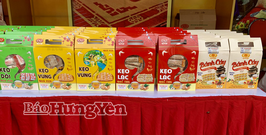 Sản phẩm OCOP kẹo lạc, bánh cáy được giới thiệu tại Liên hoan ẩm thực tỉnh Hưng Yên lần thứ III, năm 2026.