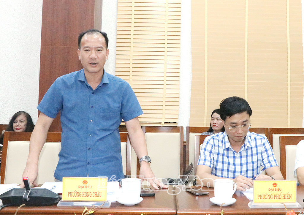 Đại diện phường Hồng Châu phát biểu tại cuộc họp.