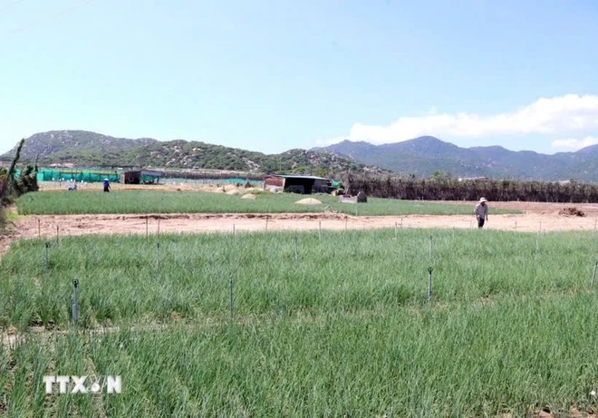 Vùng đất xây dựng nhà máy điện hạt nhân Ninh Thuận 2 trước đây ở thôn Thái An (xã Vĩnh Hải) vẫn được người dân sản xuất. (Ảnh: Công Thử/TTXVN)