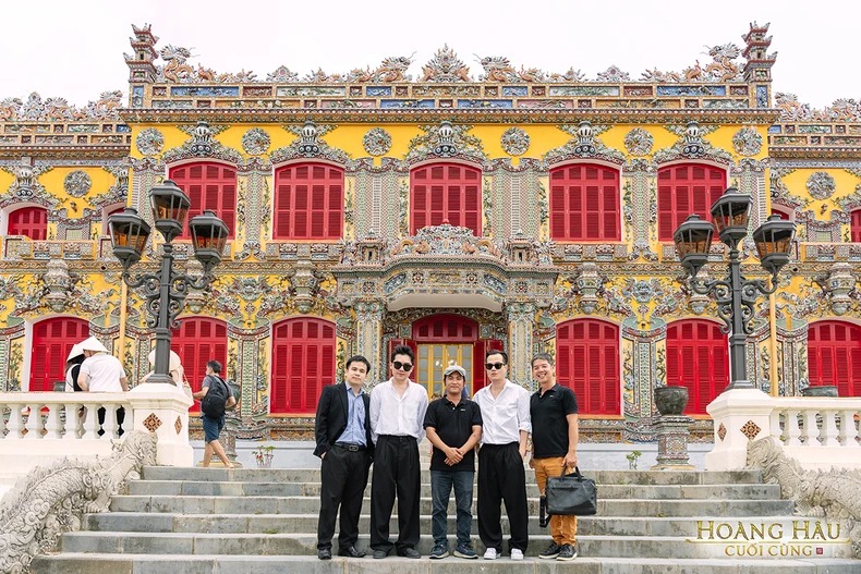 Đoàn làm phim đi khảo sát tại điện Kiến Trung. (Ảnh: Galaxy Studio)