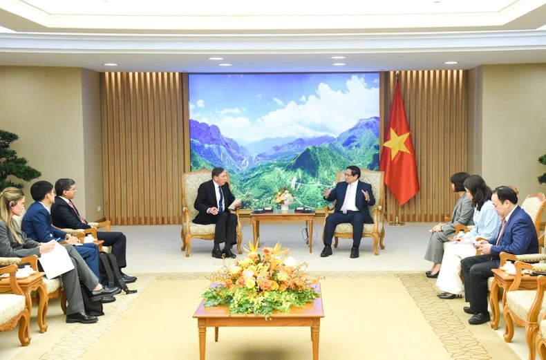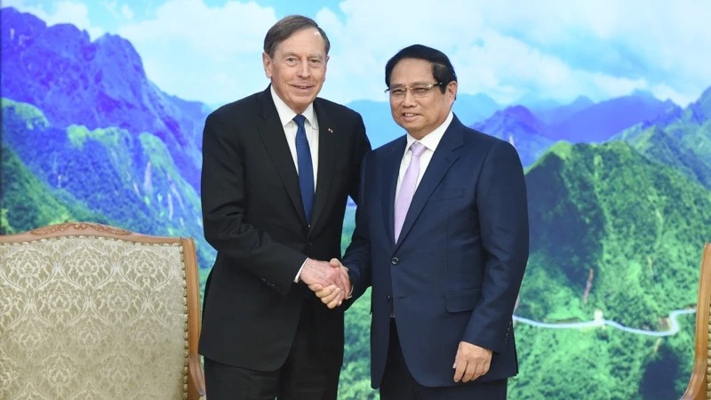 Thủ tướng Phạm Minh Chính tiếp ông David Petraeus - một trong những đồng sở hữu Quỹ đầu tư KKR (Hoa Kỳ). (Ảnh: TRẦN HẢI)