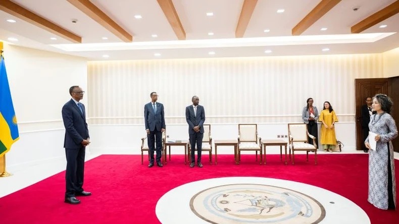 Đại sứ Việt Nam tại Cộng hòa Thống nhất Tanzania kiêm nhiệm Cộng hòa Rwanda Vũ Thanh Huyền trình Thư ủy nhiệm lên Tổng thống Cộng hòa Rwanda Paul Kagame.
