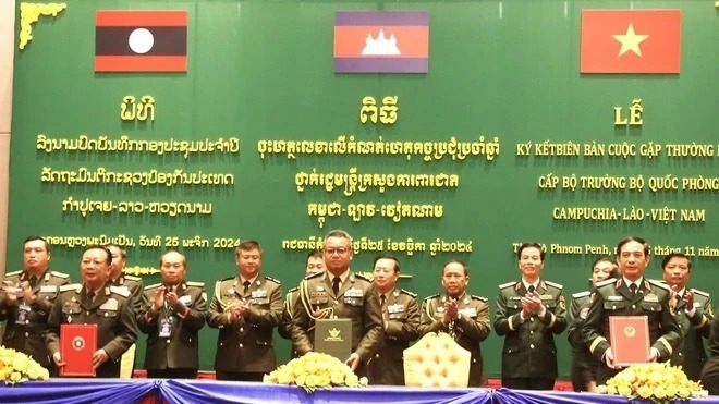 Chiều 25/11, tại thủ đô Phnom Penh của Campuchia đã diễn ra cuộc gặp thường niên Bộ trưởng Quốc phòng 3 nước Việt Nam-Lào-Campuchia nhằm tiếp tục tăng cường hợp tác quốc phòng giữa 3 quốc gia.