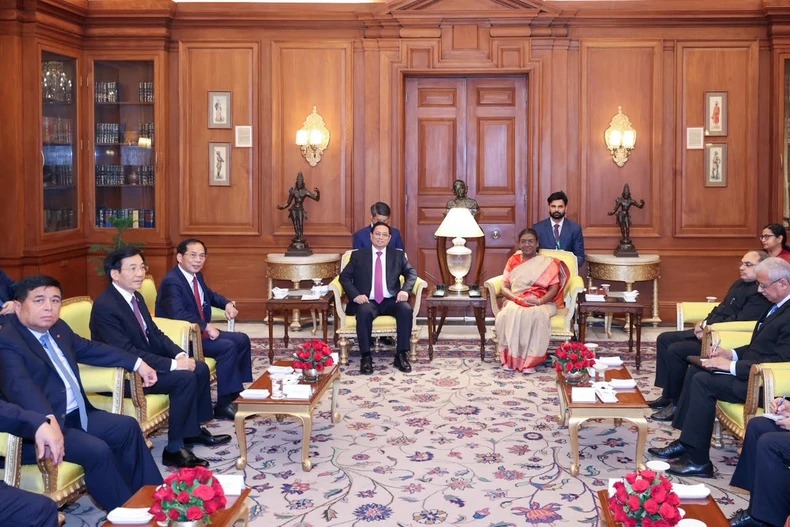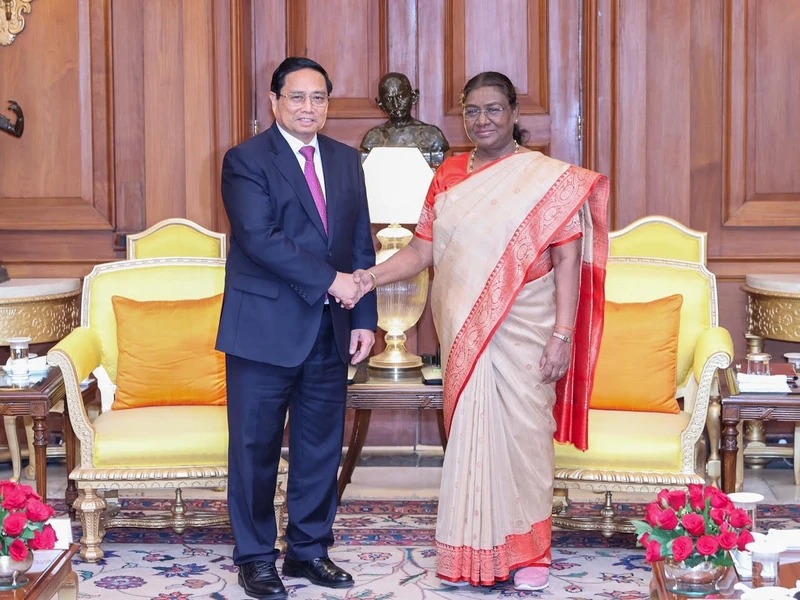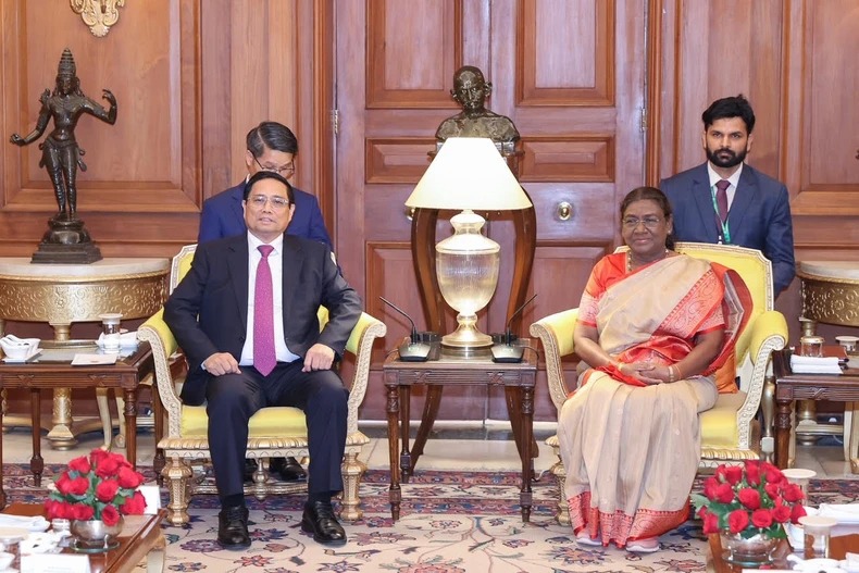 Sáng 1/8, tại Phủ Tổng thống, Thủ đô New Dehli, Thủ tướng Chính phủ Phạm Minh Chính đã hội kiến Tổng thống Droupadi Murmu nhân chuyến thăm cấp Nhà nước đến Ấn Độ.