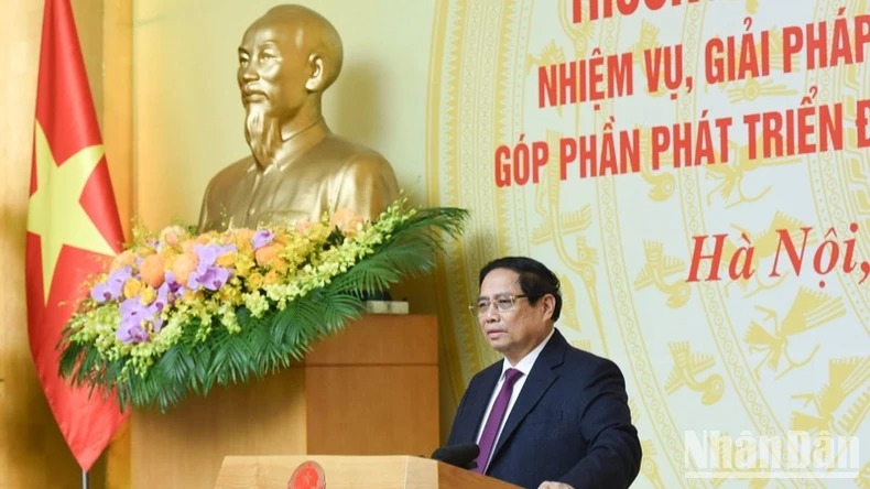 Thủ tướng Phạm Minh Chính phát biểu ý kiến tại Hội nghị. (Ảnh: TRẦN HẢI)